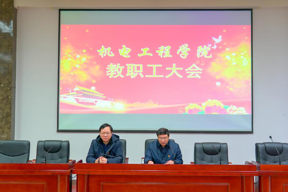 1月11日上午10:30,我院期末全体教职工大会在机电楼B214报告厅召开。学院领导班子成员及全体教职工参加会议,会议由学院党委书记肖来荣教授主持。