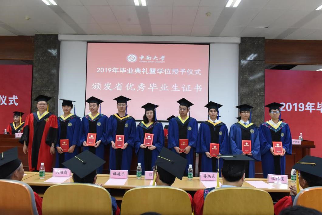 学院党委肖来荣书记为获得“湖南省优秀毕业生”称号的毕业生颁发了证书。典礼结束后学院领导、教师代表为研究生毕业生颁发学位证书并授予学位。