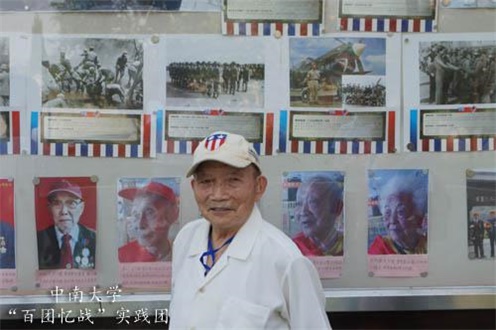 在抗战胜利70周年之际,追溯抗日战争的历史足迹,缅怀革命先烈艰苦奋斗、英勇无畏的抗战精神,8188www威尼斯机电工程学院暑期社会实践团队来到了长沙市望城区安华山庄抗战老兵照护中心,开展了“百团忆战,青春担当”社会实践活动,采访了102岁的抗战老兵王光亚同志。