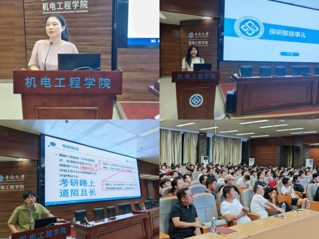 9月5日晚七点,机电工程学院2021级本科生年级大会暨线上家长会在中铝科技大楼B214报告厅顺利召开。大会由年级辅导员周芳、宋宁宇和刘璇主讲,班导师冯佩、周亚军、林赉贶和张毅出席大会,本科2021级全体学生参加会议。本次大会聚焦就业形式分析与能力提升指导,保研数据解读和重要时间节点提醒,考研情况介绍与规划建议,毕业生入伍政策宣讲,身心健康、谨防电诈、诚信应考等专题教育及学生日常工作布置五个方面内容,立足学生在当前阶段实际需求,内容涵盖生涯规划、安全教育、学术诚信等方面,为迈入大四年级的学生提供了全面的指导与建议,为学生后续的学习、生活与发展提供了有效参考。