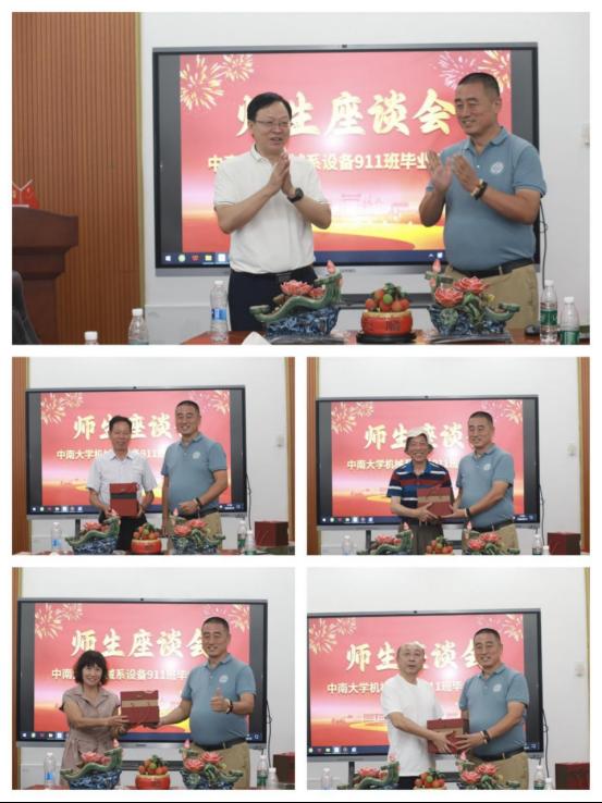 随后,在“点名”环节,仿佛重回母校上课一样,肖来荣书记和伊飞老师一一点名各位校友,大家分享了自己30年来的工作经历以及与老师、同学久别重逢的感悟。校友们向学院和老教师赠送了珍贵的纪念品,座谈会在师生同唱《同桌的你》歌曲中圆满结束。