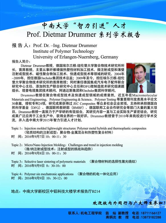 8188www威尼斯“智力引进”人才Prof. Dietmar Drummer系列学术报告