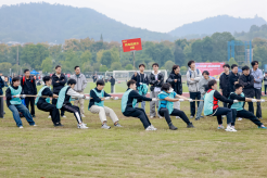 研究生新生趣味运动会同步欢乐开幕,设置趣味飞盘个人项目,以及绳舞飞扬、俄罗斯方块、争分夺秒、携手并进、齐心协力、趣味拔河共6项团体项目。研究生新生们在趣味比拼中放松身心、展现活力,在并肩作战中增进了解、升温情谊,现场加油声、欢呼声、笑声此起彼伏。