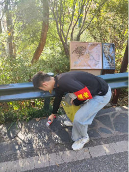 活动途中,佩戴“志愿者”袖章的支部成员同步开展岳麓山垃圾清理志愿服务。大家手持垃圾袋,细致捡拾步道路面、山林间隙的纸屑、塑料瓶等杂物,以实际行动守护景区生态环境,践行绿色发展理念。