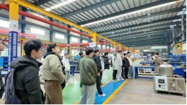 在生产车间参观走廊,同学们参观了从加工到装配的完整生产链。高效的精益生产线、高精度的研发测试平台、严格的安全管控措施以及准时化的物流系统,令同学们印象深刻。其中,透气帽防漏油结构和连续329天安全生产无事故的记录,引发了大家的讨论与赞叹。