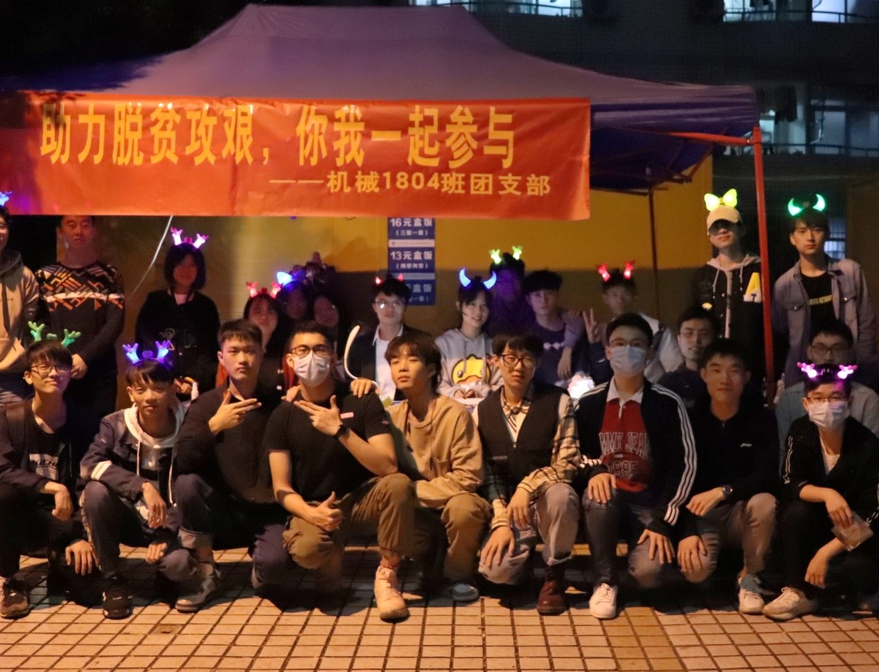 10月24日晚,我院机械1804班于南校区升华广场举行十月主题团日活动——脱贫攻坚齐助力,爱心义卖共参与,班导师黄奎和全班同学共同参与本次活动。